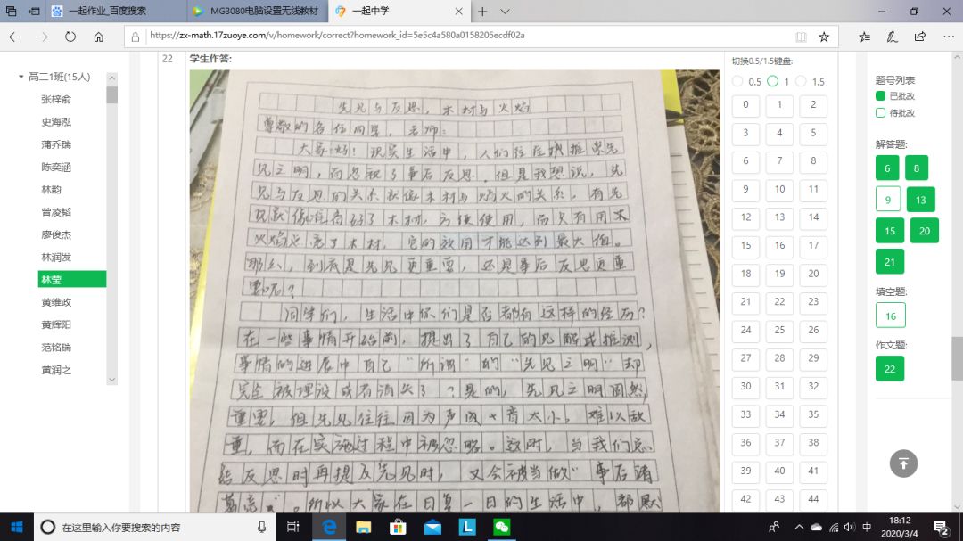 早在網(wǎng)課開始第二周,針對老師們對網(wǎng)課效率不高的顧慮,高二年級就做了一次網(wǎng)上調(diào)查,絕大部分老師贊成進(jìn)行一次網(wǎng)上考試,以檢驗網(wǎng)課的學(xué)習(xí)效果,以便調(diào)整教學(xué)。之后,學(xué)校開始著手準(zhǔn)備網(wǎng)上考試,向技術(shù)平臺提交學(xué)生和老師信息,下發(fā)《一起作業(yè)學(xué)生注冊登錄指引》和《一起作業(yè)教師作業(yè)批改操作指南》。年級各備課組開始命題,為了檢驗二實“線上學(xué)堂”的實效,學(xué)校要求命題的范圍以直播課內(nèi)容為主,兼顧寒假作業(yè)??记耙恢埽鱾湔n組都上交平臺進(jìn)行試卷制作。2月26日,網(wǎng)上作業(yè)批改功能正式上線,高二年級要求備課組在考試之前至少利用線上平臺布置批改一次網(wǎng)上作業(yè),積累經(jīng)驗,提醒平臺改進(jìn)不完善的問題,及時更新,同時讓學(xué)生和老師熟悉操作技巧。備課組在考前都向?qū)W生發(fā)布了考試注意事項,要求學(xué)生豎拍照片,注意字跡大小和拍照清晰度,單題上傳,試卷在閱讀頁面和題目設(shè)置也做了優(yōu)化,大大方便了學(xué)生答題,有效減輕老師改卷負(fù)擔(dān),提高了閱卷的效率。