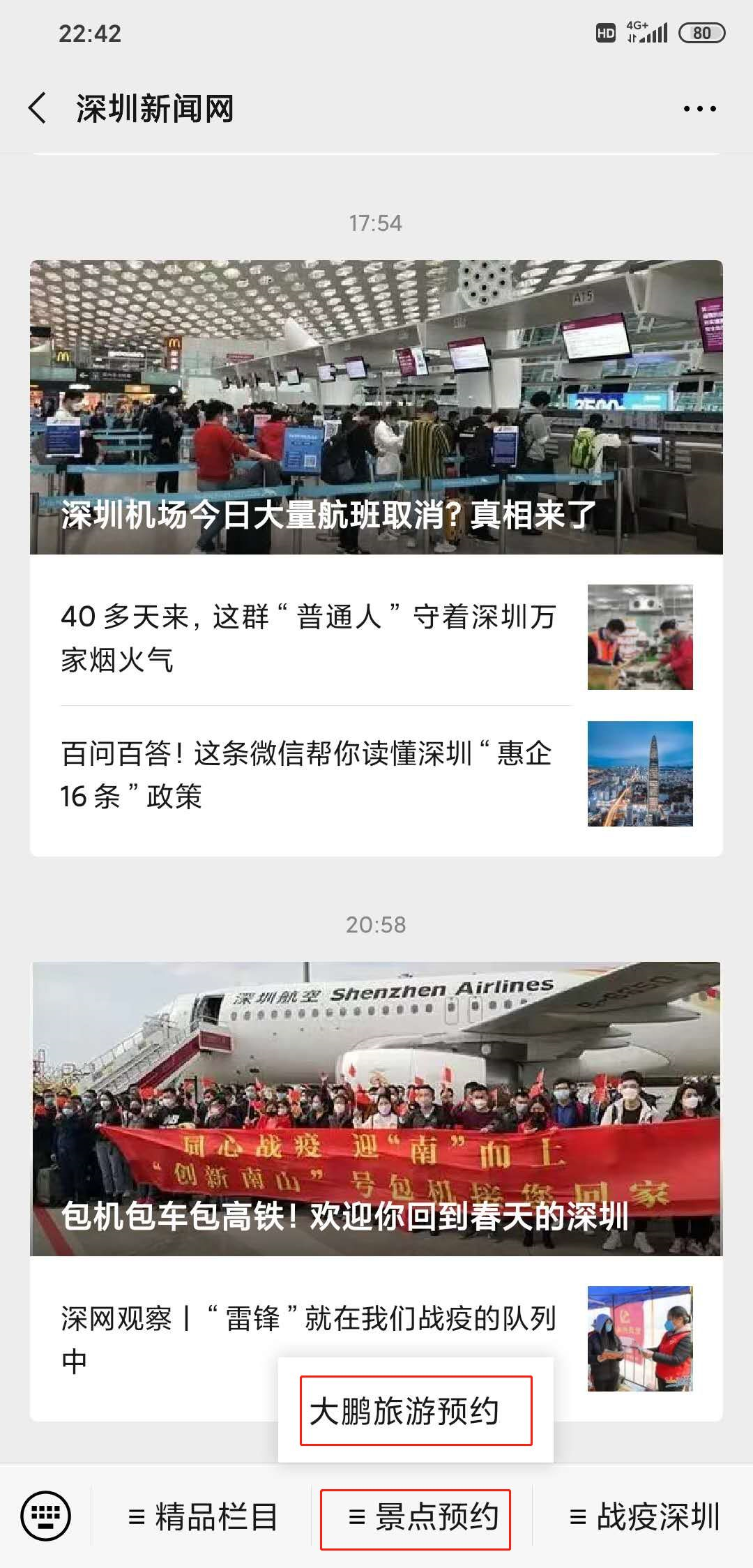⑨3月6日起至疫情防控期結(jié)束,配合大鵬新區(qū)兼顧疫情防控和旅游景區(qū)、住宿業(yè)發(fā)展的前提下,采取分類分步方式開放旅游景區(qū)工作,“疫情防控期大鵬新區(qū)旅游預(yù)約平臺”正式上線,即日起所有前往新區(qū)游客(含住宿與非住宿)出發(fā)前3至1日均需進(jìn)行實名預(yù)約。(預(yù)約方式請見下圖)