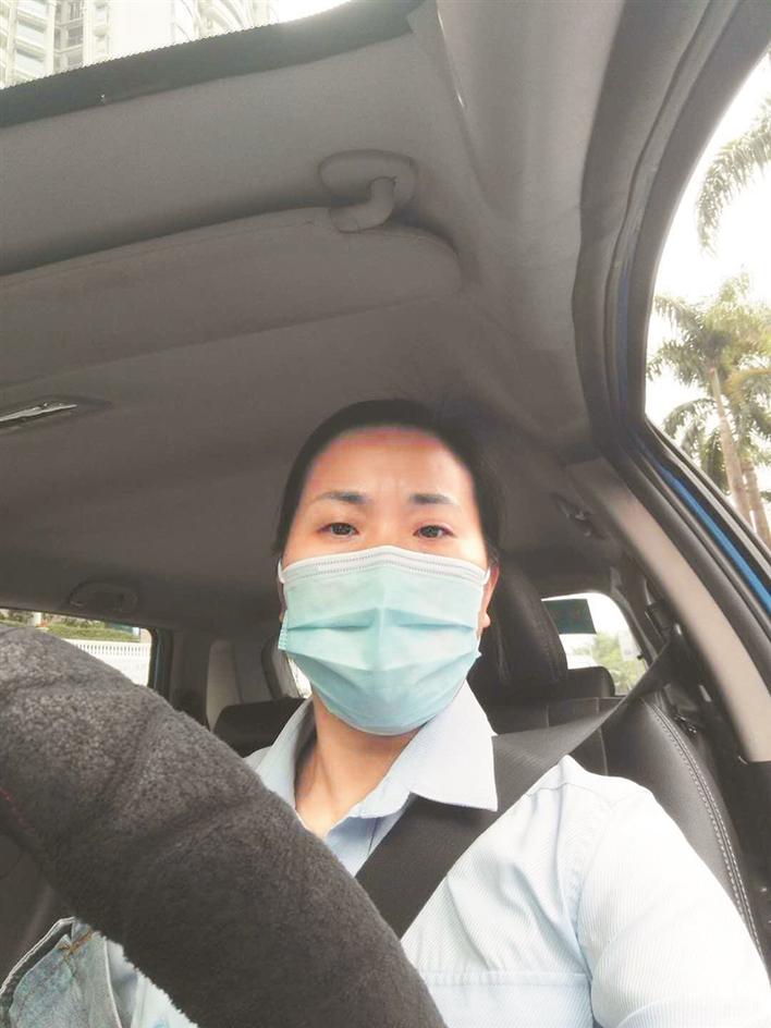 史美娟今年50歲,河南人,9年前隨丈夫來(lái)深,當(dāng)起了出租車司機(jī),一直干到現(xiàn)在。兩三年前,丈夫回老家忙生意,平時(shí)就由她一人照顧女兒。母女倆關(guān)系親近,疫情發(fā)生后,女兒每天準(zhǔn)備好酒精,守在家門口等她下班回家?!皨專D(zhuǎn)一圈,我給你消毒!”史美娟卻難免有些擔(dān)心。每次她都匆匆接過(guò)酒精,讓女兒離自己遠(yuǎn)一點(diǎn)。家里老人也害怕,不同意史美娟出車。但史美娟始終堅(jiān)持在一線營(yíng)運(yùn)。每天早上開(kāi)車前,史美娟會(huì)先將全車消毒一遍,戴上雙層口罩,開(kāi)車時(shí)打開(kāi)四個(gè)窗戶,保持通風(fēng)。每位乘客下車后,史美娟都會(huì)再噴一遍消毒液,遇上現(xiàn)金支付的,還要注意用酒精消毒接過(guò)錢的手套。除了公司每日發(fā)放的口罩,她還給乘客多準(zhǔn)備了幾份,不過(guò)疫情以來(lái)她幾乎沒(méi)有碰到過(guò)不戴口罩的乘客。