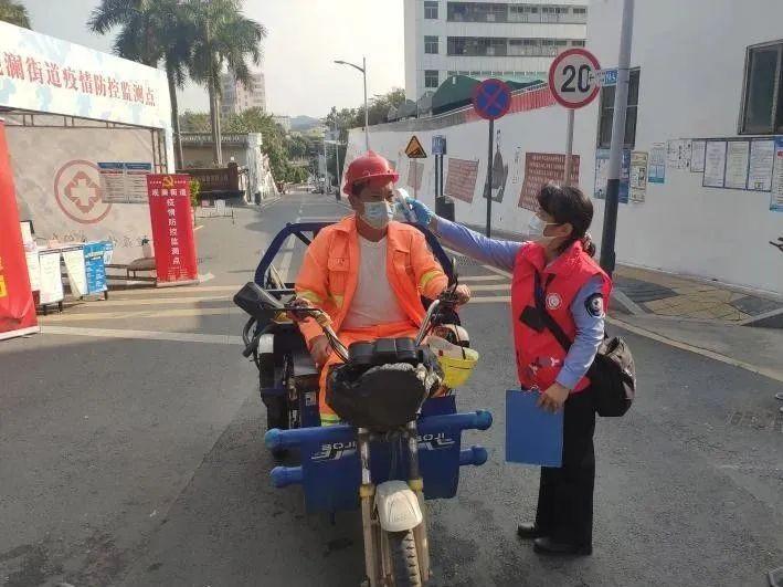 龔韻是龍華區(qū)衛(wèi)生監(jiān)督所衛(wèi)生監(jiān)督員,身軀嬌小的她,為加快速度,不讓司機下車耽誤時間,只好踮起腳跟,努力抬高身子,為司機測量體溫……