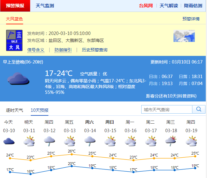 盡管冬天已經(jīng)過去,但是當(dāng)下的深圳乍暖還寒,氣溫變化較大,需要依據(jù)氣溫變化增減衣物,以防感冒。受新一股冷空氣影響,10日早晨有陣雨,伴零散雷暴,北風(fēng)加大,沿海、海區(qū)和高地有7級(jí)左右陣風(fēng)。10日白天降雨結(jié)束,可見陽光,氣溫略降3-4℃,氣溫18-23℃。11日氣溫下降至16℃左右,天氣轉(zhuǎn)涼。12-13日氣溫明顯回升。 (記者董思)