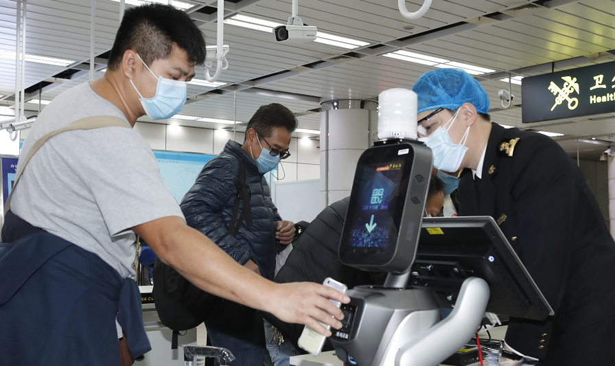 而隨著返深車輛和人員的增加,深圳從2月8日開始啟用線上車輛申報登記。緊接著,在G94高速深圳觀瀾收費(fèi)處,懸掛有申報二維碼的無人機(jī),成為防疫一線工作人員的得力助手。據(jù)了解,目前深圳市已對所有進(jìn)出車輛實施掃碼線上申報。而在深圳鶴洲檢查站,由深圳市公安局寶安分局聯(lián)合優(yōu)必選科技等合作單位共同打造的“黃田田”,每逢返深車輛經(jīng)過總會在路邊提醒入深人員掃碼登記。這是全國首款用在基層派出所滿足實戰(zhàn)需求的5G機(jī)器人。