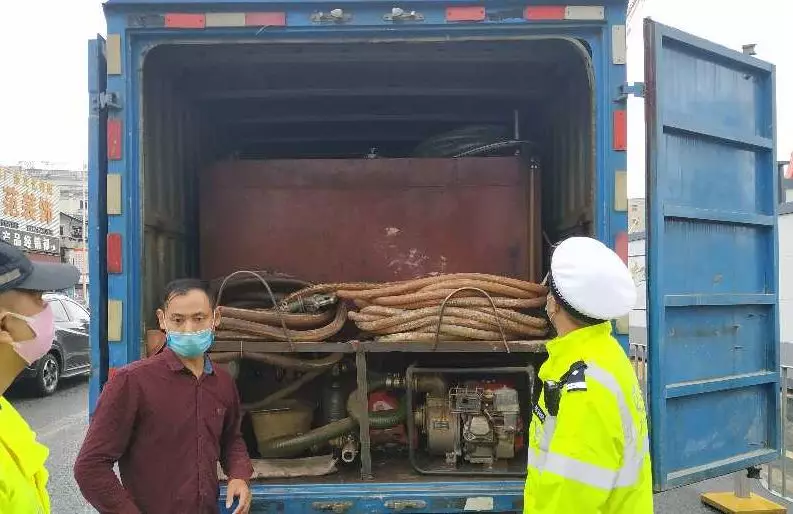 里面放著鐵質油箱、油管,還有計量器、加油槍等物品,一個非法流動加油車是啥樣子,這輛粵B號牌輕型廂式貨車可都有。