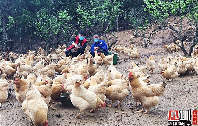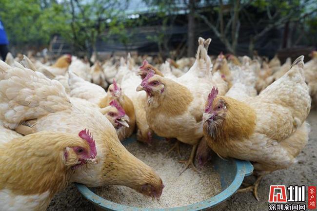 3月11日的清晨,66歲的王子平頂著薄霧,在田西村百香雞孵化養(yǎng)殖基地中,撒下了喂養(yǎng)雞群的百香果玉米等混合飼料。這些雞,已經(jīng)在田西村山坡上散養(yǎng)了超過240天,也就是扶貧產(chǎn)業(yè)農(nóng)產(chǎn)品“百香雞”。這是深圳南山對口扶貧連平縣百香雞孵化養(yǎng)殖基地的一個(gè)勞作場景。