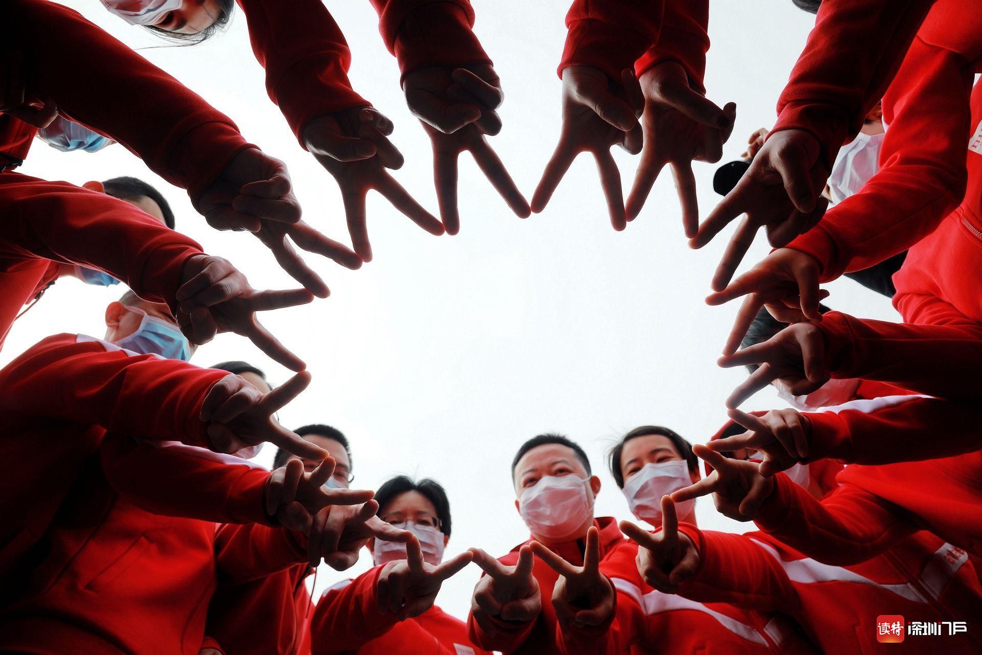 3月11日上午,深圳醫(yī)療隊(duì)全體“小紅人”第一次全員集結(jié)在監(jiān)利“雙清零”標(biāo)志性建筑——縣人民醫(yī)院感染科住院樓前。他們要在這里照一張合影,以此來紀(jì)念這次特殊的湖北之行。