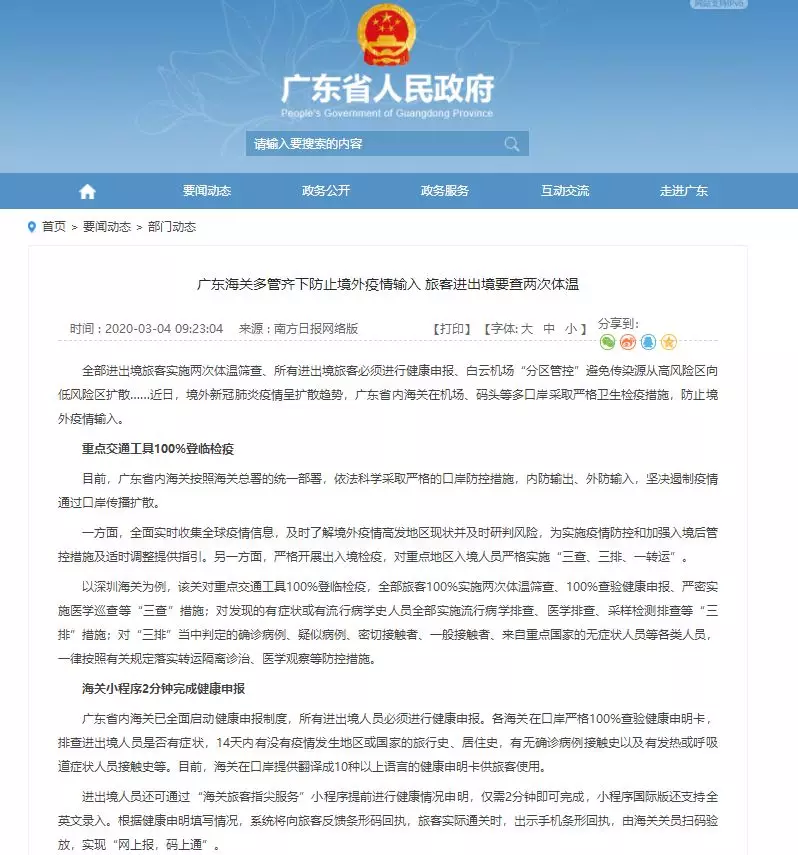 廣東省內(nèi)海關(guān)已全面啟動健康申報制度,所有進出境人員必須進行健康申報。