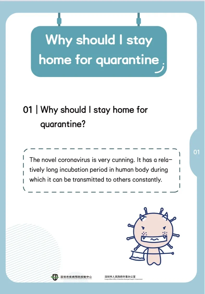 因此,為了您和家人健康,從疫情高發(fā)重點(diǎn)地區(qū)來深返深后,應(yīng)當(dāng)進(jìn)行14天居家隔離,以確認(rèn)沒有感染病毒。在這非常時(shí)期,做好居家隔離既是對(duì)您自己和家人最好的保護(hù),也是為疫情早日結(jié)束做貢獻(xiàn)。
