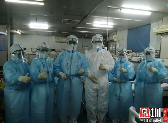 深圳邊檢總站赴鄂醫(yī)療隊隊員在ICU內(nèi)合影