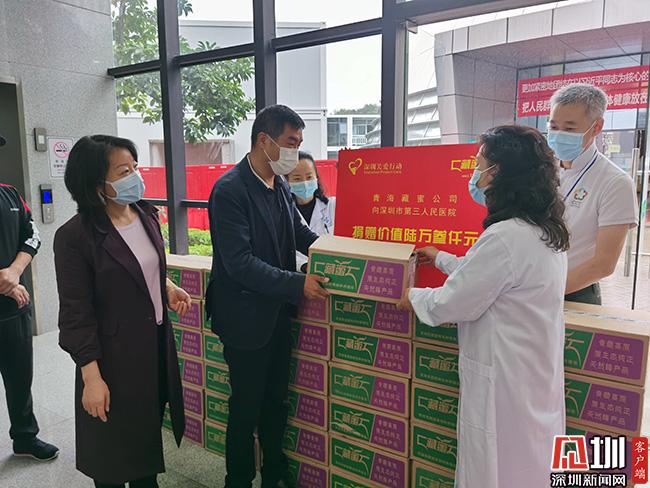為了向這些最美的逆行者致敬,市關(guān)愛(ài)辦攜手愛(ài)心企業(yè)青海藏蜜公司與深圳市康輝旅行社,看望慰問(wèn)一線(xiàn)的醫(yī)務(wù)工作人員。青海藏蜜公司向一線(xiàn)醫(yī)護(hù)人員捐贈(zèng)1500盒青藏高原野花蜜,總價(jià)值6.3萬(wàn)元。深圳藏蜜營(yíng)銷(xiāo)管理有限公司總經(jīng)理王大鳴動(dòng)情地說(shuō),抗擊疫情是一場(chǎng)沒(méi)有硝煙的戰(zhàn)役,牽系著所有人的心,因?yàn)獒t(yī)護(hù)人員的日夜守護(hù)與付出,大家才能安心復(fù)工,照常生活。希望醫(yī)護(hù)人員能在勞累之余,泡上一杯蜂蜜水,增強(qiáng)抵抗力,緩解心里壓力,更好地續(xù)航戰(zhàn)斗。