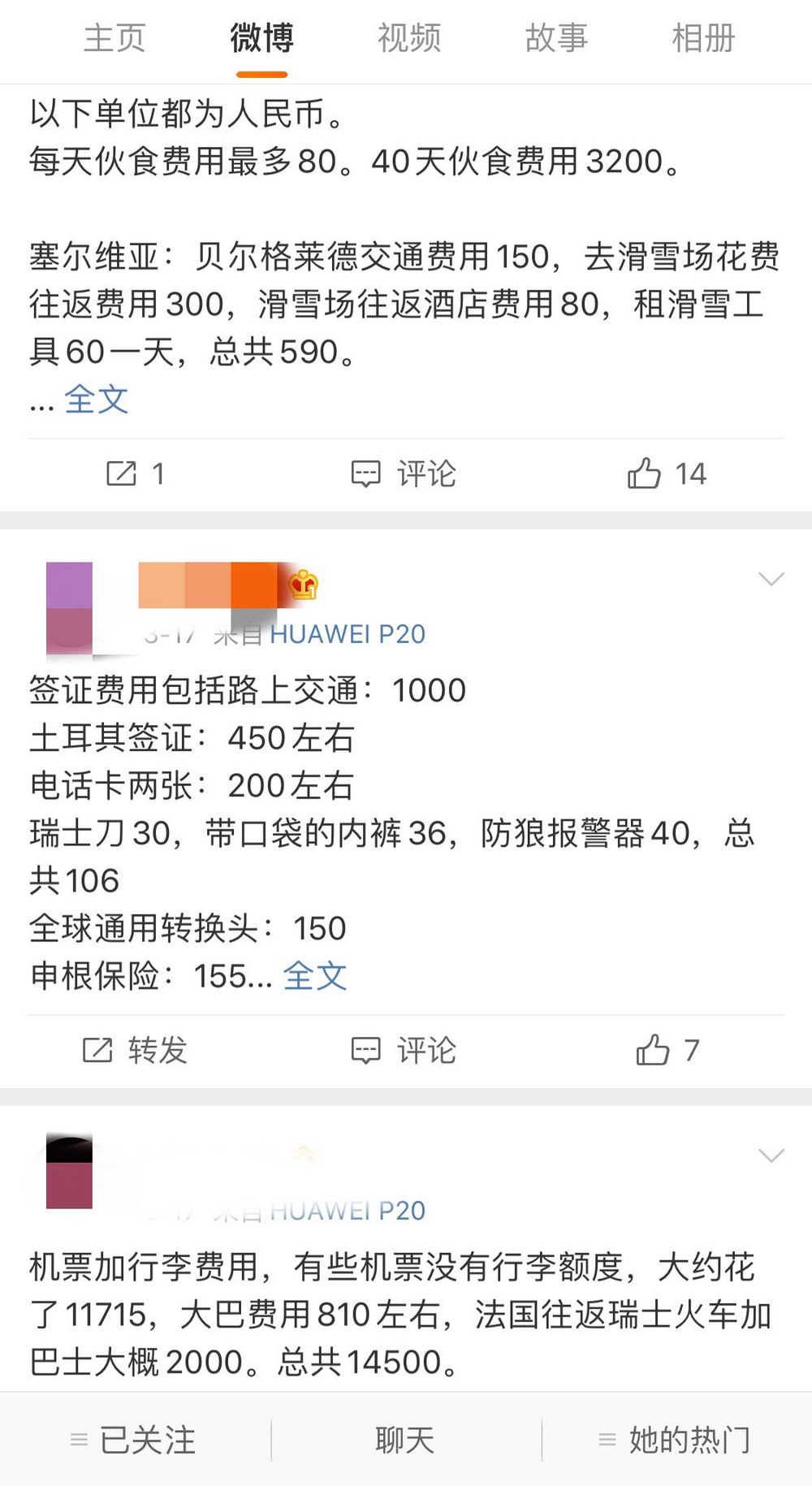 小Y后來知道,她的經歷在網上引起關注并引發(fā)網友質疑。記者從網上了解到,網友目前主要質疑其旅行費用來源,對此,小Y表示:“因為之前在網上看到別的女生花一萬五窮游了11個國家,所以我也很想試一下,就開始很仔細的規(guī)劃,花了很多心思,我所有的旅行費用都是我自己平時做家教賺的,出去玩也基本上是窮游?!贝送?,小Y還將旅行所有費用明細列出并在本人微博上公布。