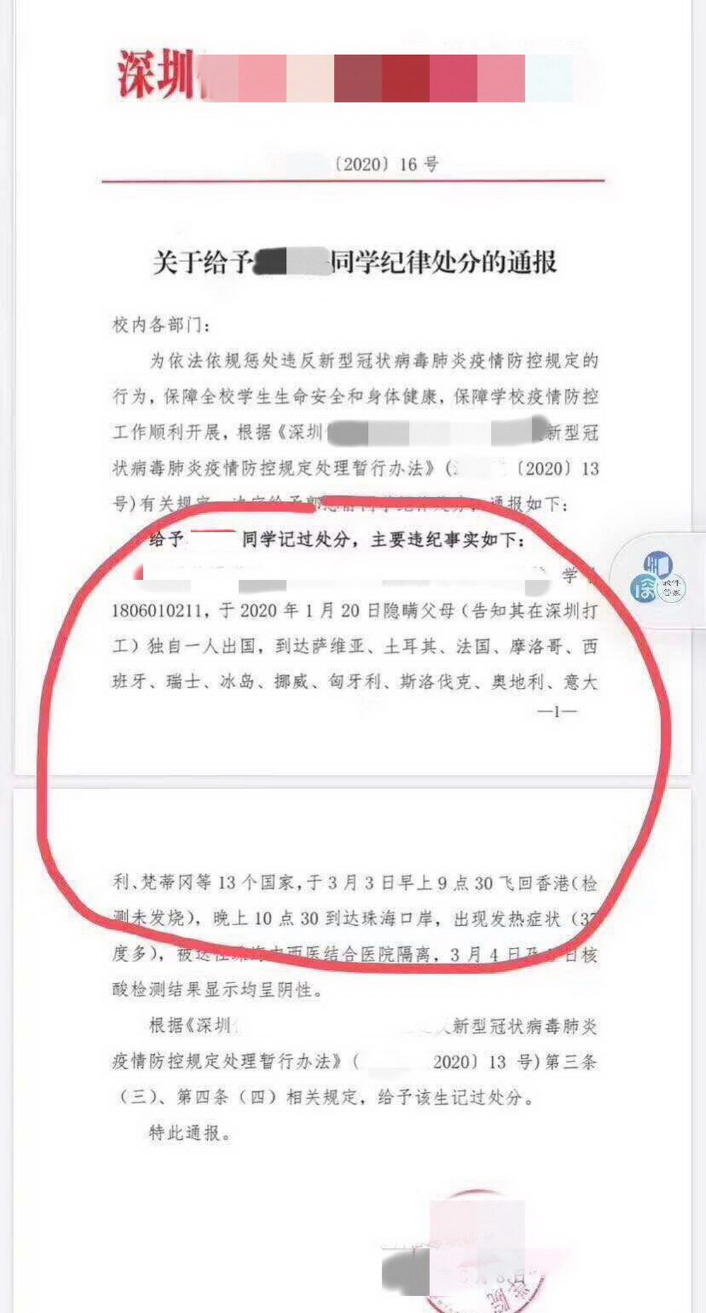 見圳客戶端·深圳新聞網2020年3月20日訊 近日,一位深圳女大學生小Y瞞著父母出游13國,回國后因發(fā)熱被隔離并因未如實向學校匯報行程被處分,此事引發(fā)社會關注。3月18日,當事人接受深圳新聞網記者采訪,詳述事件經過并表達悔意。