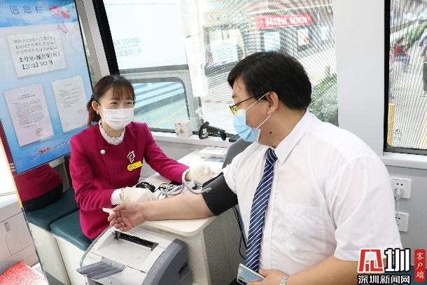正式抽血之前,為了確保每位參與獻(xiàn)血的老師和家長(zhǎng)們的身體狀況適合獻(xiàn)血,醫(yī)生為參與獻(xiàn)血的老師家長(zhǎng)們進(jìn)行基本的體檢(量血壓測(cè)心率采集血樣)。