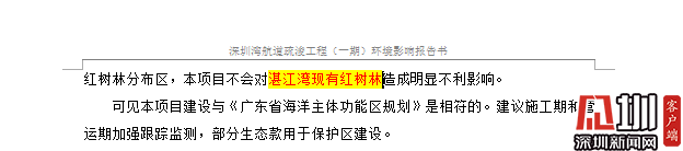 記者在《環(huán)評報告》中看到,有關表述存在錯誤屬實,在對深圳灣航道疏浚工程(一期)項目可實現(xiàn)的目標的闡述中,將“深圳市的目標”闡述為“湛江市的目標”;將“深圳灣紅樹林”表述成“湛江灣紅樹林”;將“深圳市國民經(jīng)濟”表述成“湛江市國民經(jīng)濟”;將“深圳海事局”表述成“湛江海事局”等。