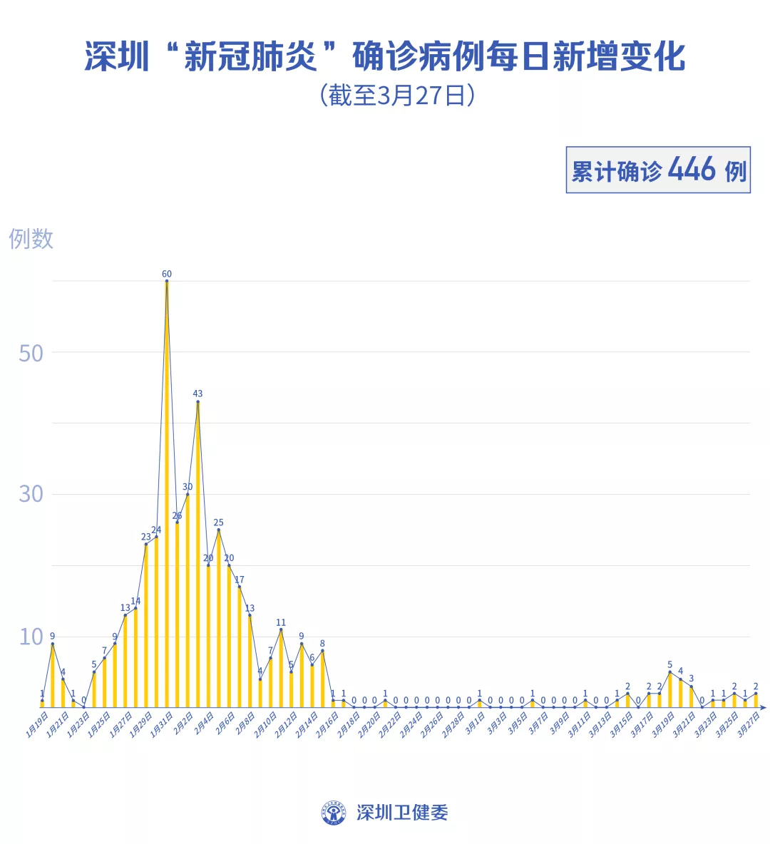 截至3月27日24時(shí),深圳累計(jì)報(bào)告“新冠肺炎”病例446例。3月27日當(dāng)天新增2例。