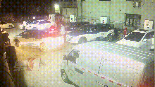 監(jiān)控畫面顯示,25日晚上23點(diǎn)左右,一輛出租車和一輛面包車先后到達(dá)龍崗大道木棉灣路段的一個(gè)充電站。出租車司機(jī)先找到了一個(gè)位置,準(zhǔn)備倒入充電時(shí),后面的面包車突然往前開,兩名司機(jī)因?yàn)橥\囄坏膯?wèn)題發(fā)生爭(zhēng)執(zhí)。隨后,出租車司機(jī)下車?yán)碚摚瑒?dòng)手推搡了面包車司機(jī)一下。