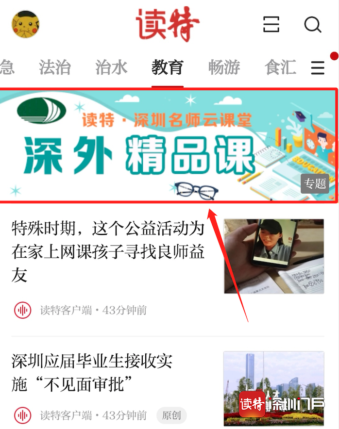打開讀特客戶端,點擊“教育”頻道