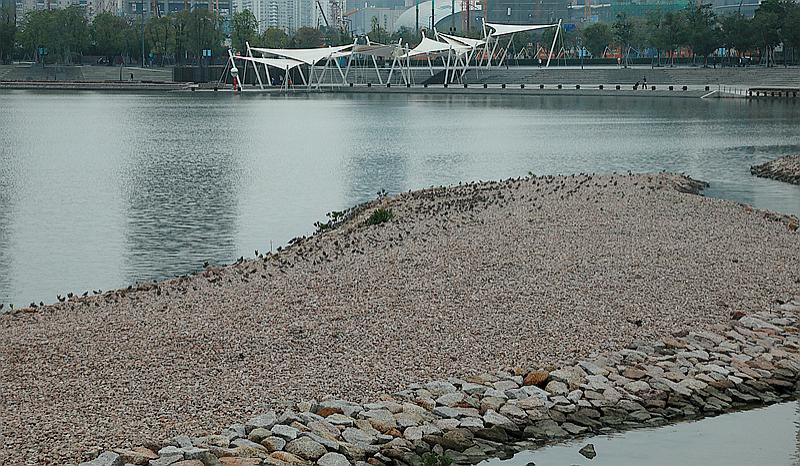記者在采訪中了解到,2017年初,深圳觀鳥人士發(fā)現(xiàn)人才公園建設(shè)接近尾聲,人工島嶼種植了密集的植物。深圳市觀鳥協(xié)會隨即向人才公園建設(shè)主管部門提出《人才公園鳥類棲息地改善建議》。相關(guān)政府部門在征詢了廣東內(nèi)伶仃福田國家級自然保護區(qū)管理局、市野生動植物保護管理處、南山區(qū)城管局和深圳市觀鳥協(xié)會的意見和建議后,就協(xié)調(diào)處理人才公園水鳥棲息地等問題達成了一致意見,決定在適當位置增加浮灘,增加水鳥停留棲息的空間。整改后的人工碎石灘,很快便吸引了大量的鸻鷸類候鳥前來停棲。"這個人工石灘的距離適中,既方便人類觀察,又不至于讓鳥兒感覺受到威脅,這么多年來,人與候鳥之間一直相安無事,鳥兒也已經(jīng)習慣了這里的環(huán)境,所以它們才能在人類的眼皮底下安心地打盹兒。""PT"向記者介紹說。