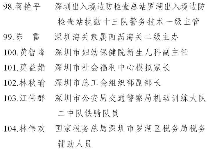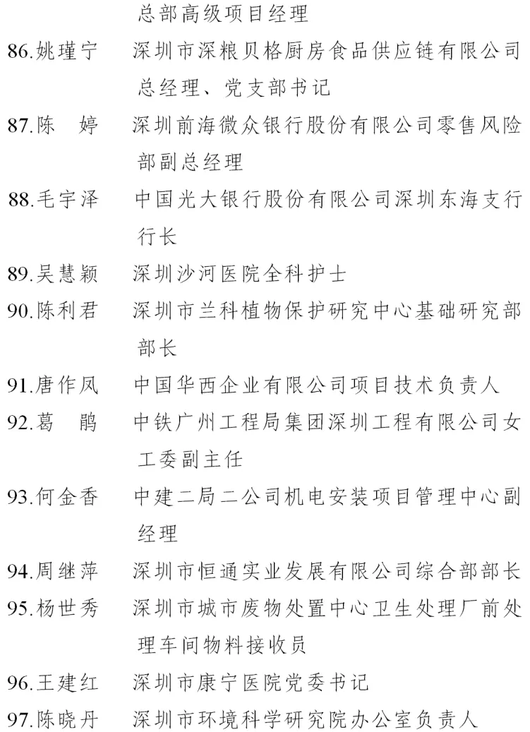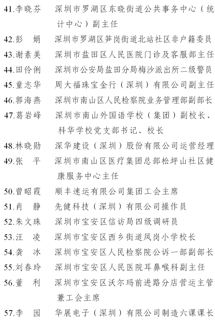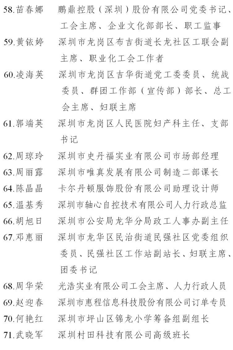 一、深圳市五一巾幗標(biāo)兵崗名單