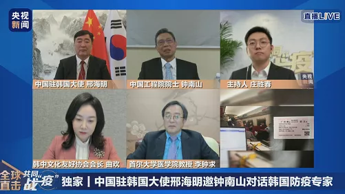 4月10日15時,中國駐韓國大使邢海明邀請鐘南山院士與韓國防疫專家李鐘求教授在線交流。鐘南山專門制作了一個題為“抗擊新冠肺炎的中國經(jīng)驗(yàn)”的PPT,向韓國朋友介紹中國經(jīng)驗(yàn)。
