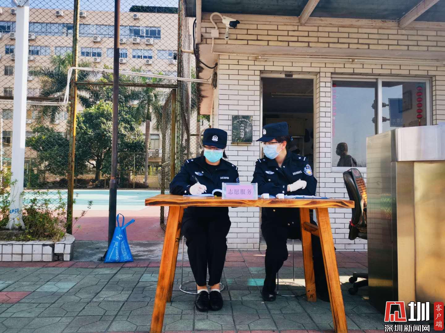 陸慧(左一)正在做疫情防控志愿服務(wù)。(攝影:曾輝)