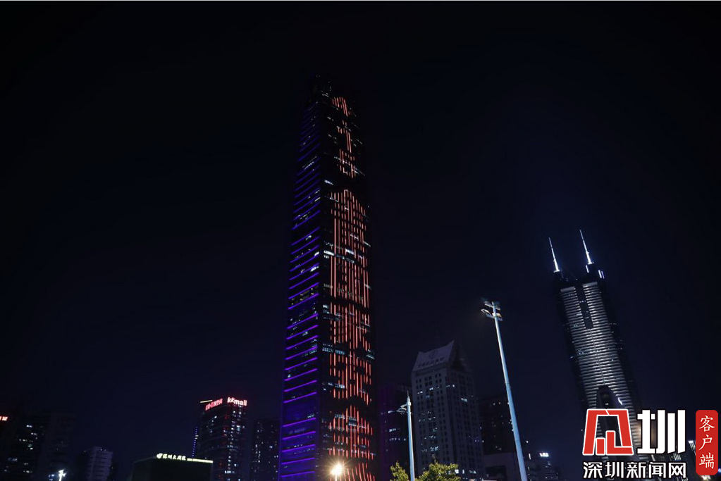 另一個角度的京基100,建筑外體亮出“41全國國家安全教育日”字眼。
