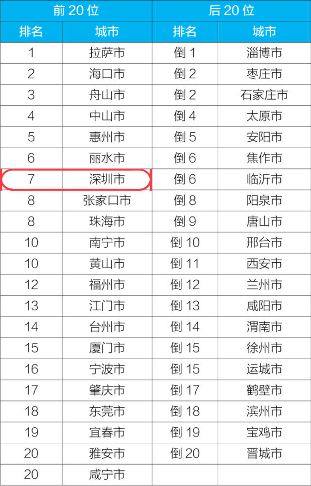 3月,168個(gè)重點(diǎn)城市中淄博、棗莊、石家莊市等城市空氣質(zhì)量相對(duì)較差(從倒數(shù)第1名至倒數(shù)第20名);拉薩、???、舟山市等城市空氣質(zhì)量相對(duì)較好,深圳排名第7。