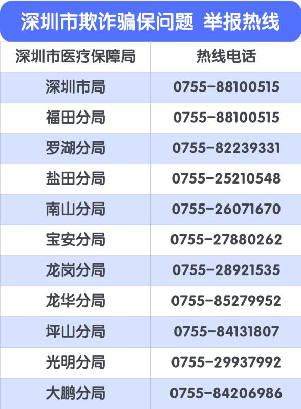 市醫(yī)保局已在深圳市各區(qū)設(shè)立投訴舉報(bào)電話,歡迎廣大市民共同參與醫(yī)?;鸨O(jiān)督管理。市民可通過實(shí)名舉報(bào)和匿名舉報(bào)方式檢舉、揭發(fā)欺詐騙保行為,經(jīng)查證屬實(shí)的,將根據(jù)《深圳市欺詐騙取醫(yī)療保障基金行為舉報(bào)獎勵實(shí)施細(xì)則(試行)》對舉報(bào)人予以獎勵,獎金最高可達(dá)10萬元!(記者 莊瑞玉)