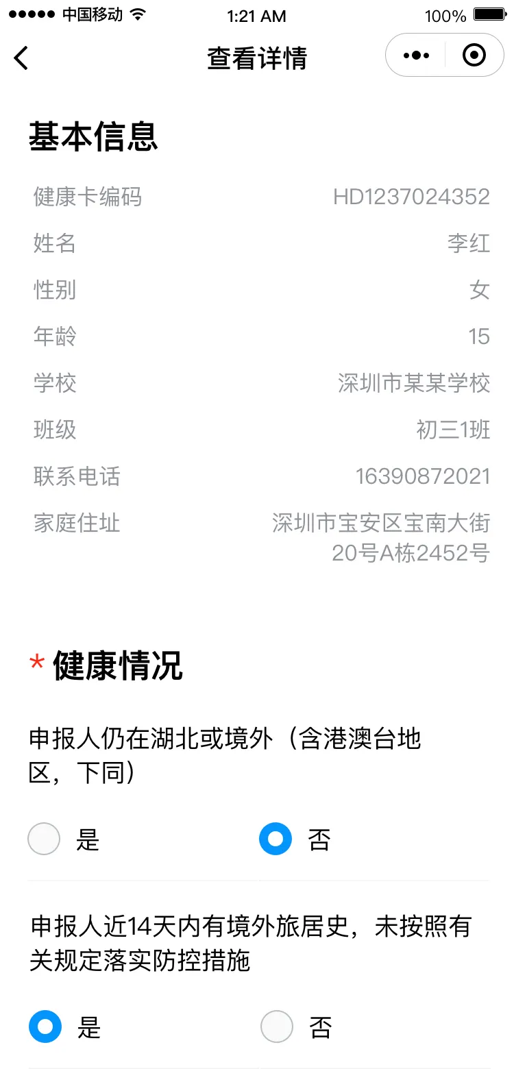 點擊“查看列表”,可查看對應(yīng)人員的健康申報記錄。