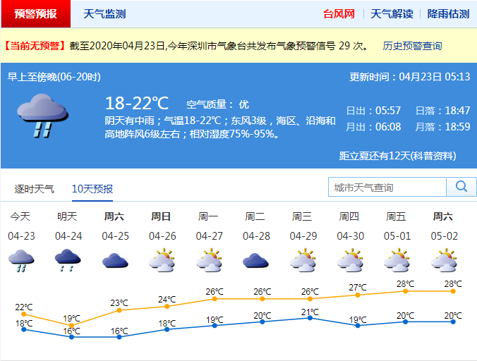 4月壓軸冷空氣登場,結(jié)束連續(xù)多日的悶熱天氣。22日白天,深圳陰天偶有小雨,氣溫較21日回落5℃左右,降溫明顯,體感清涼。