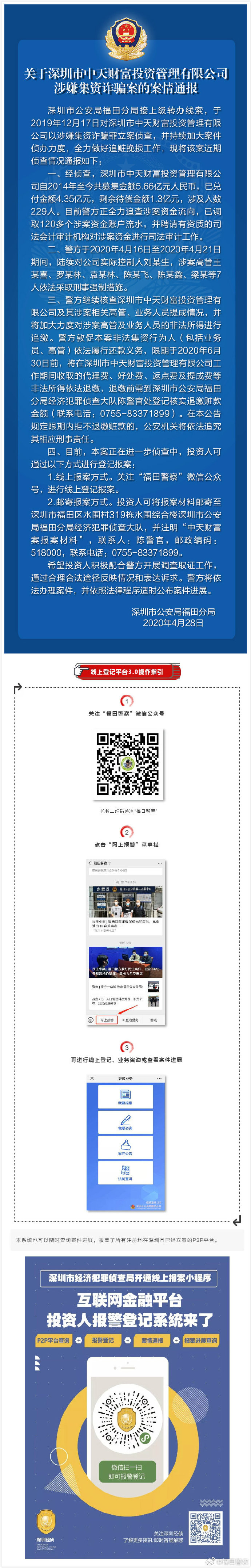 關(guān)于深圳市中天財富投資管理有限公司涉嫌集資詐騙案的案情通報 ????