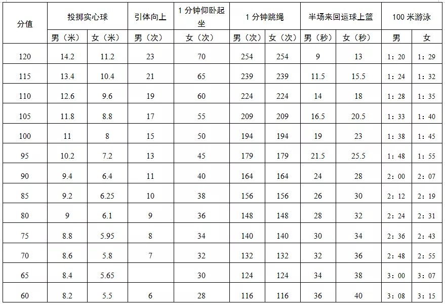 深圳市中考體育項(xiàng)目評(píng)分標(biāo)準(zhǔn)