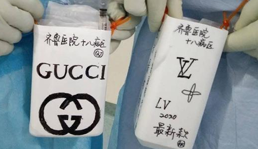 前段時間,一批新款獨(dú)家限量版名牌桶包亮相武漢大學(xué)人民醫(yī)院。因防護(hù)服沒有口袋,醫(yī)護(hù)人員們便突發(fā)奇想用塑料空瓶、事先畫好的裝飾圖、膠水和方便斜挎的繩子做出了桶包↓↓