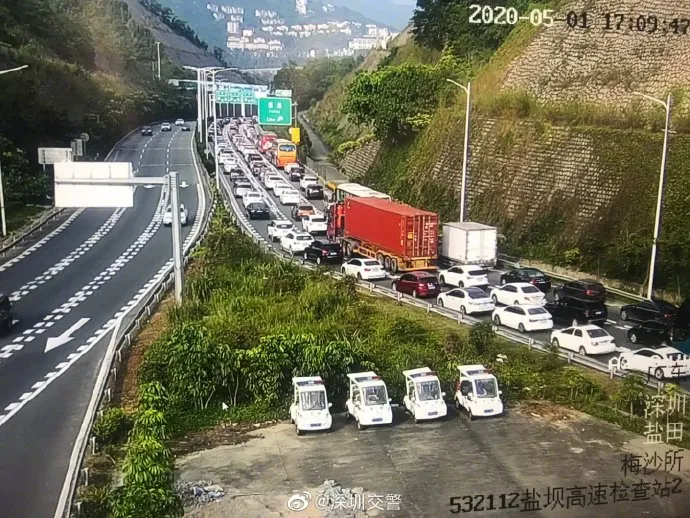 5月1日上午8時(shí)起,沈海高速荷坳段東行、深鹽二通道東行均出現(xiàn)車多緩行,并持續(xù)近10個(gè)小時(shí)的車多狀態(tài),絕大多數(shù)為出深車輛。