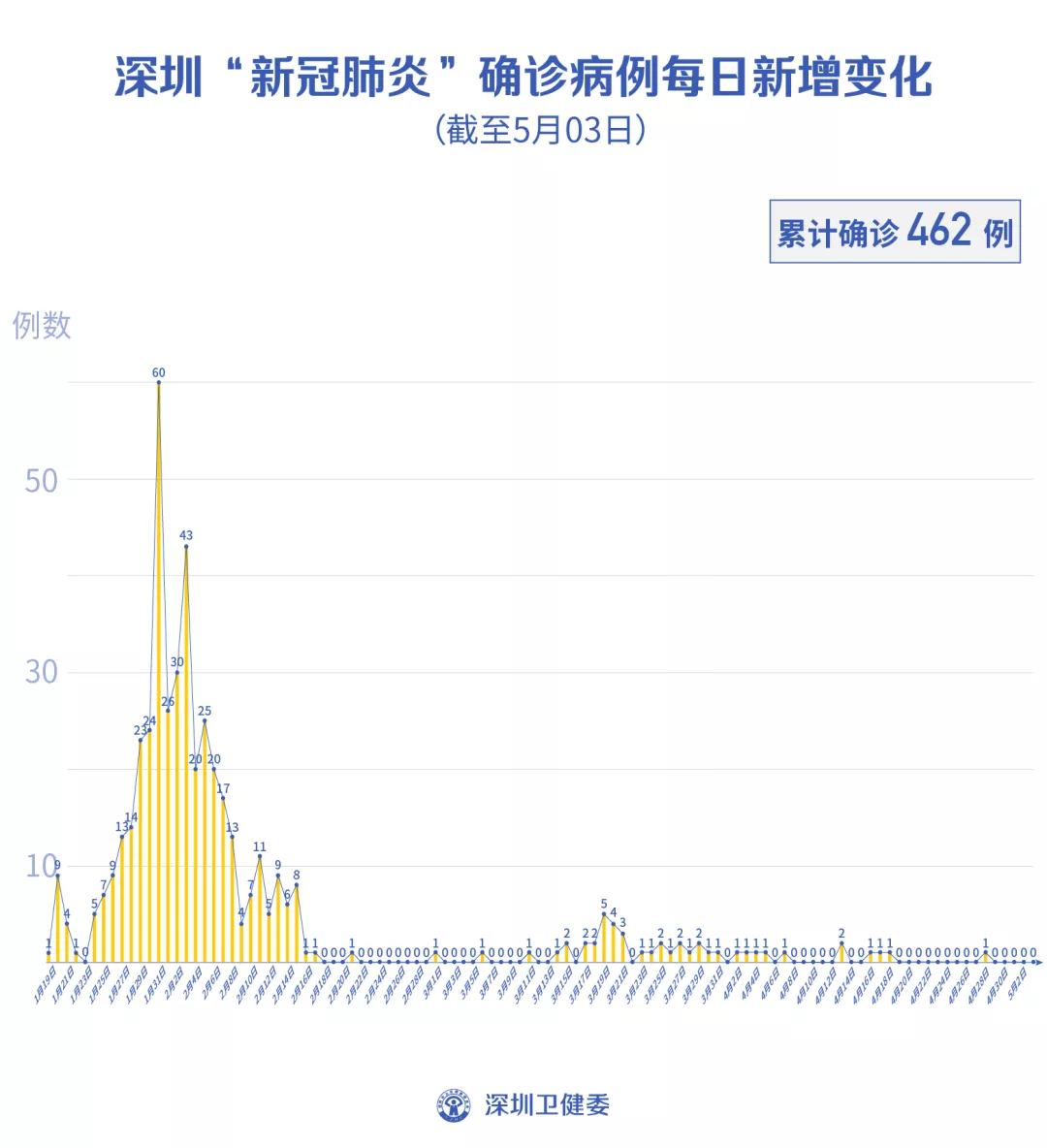 截至5月3日24時,深圳累計報告新冠肺炎病例462例。5月3日當(dāng)天新增出院1例。