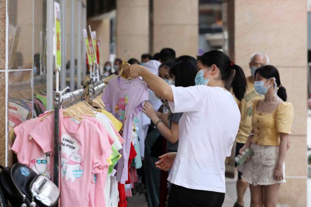 ▲夏季服裝開售,不少商家打折促銷,吸引市民選購(gòu)。