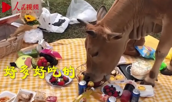 最近福建福清的幾位同學(xué)吭哧吭哧爬了一個(gè)小時(shí)的山,在草地上剛鋪好餐布擺完食物,正準(zhǔn)備拍照時(shí),來了一頭?!?/p>