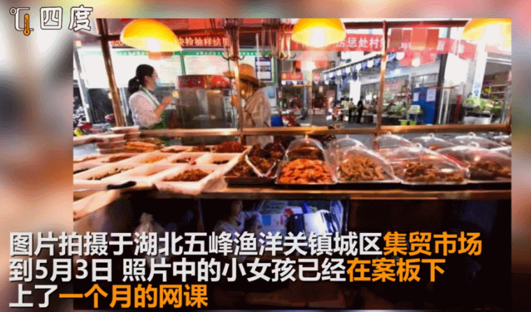 她就一直在鹵菜店的案板下上網課,