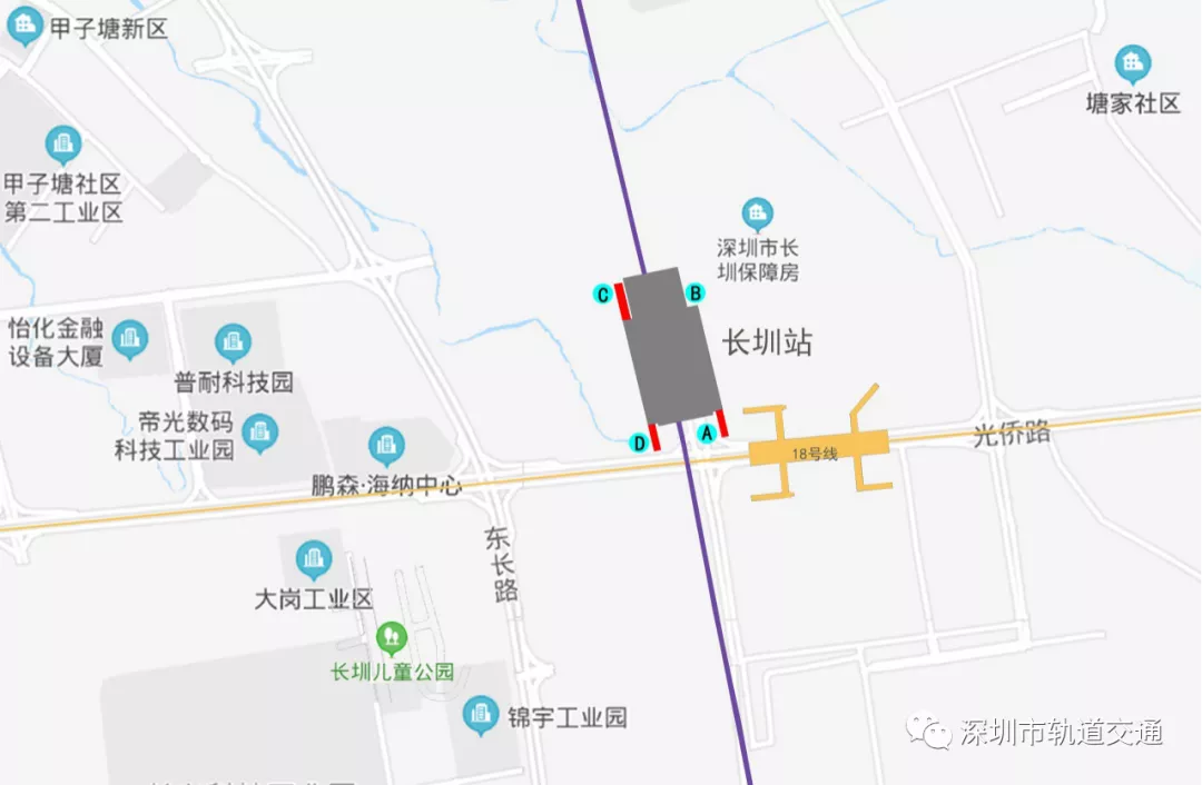 ▲圖1:長圳站出入口分布示意圖