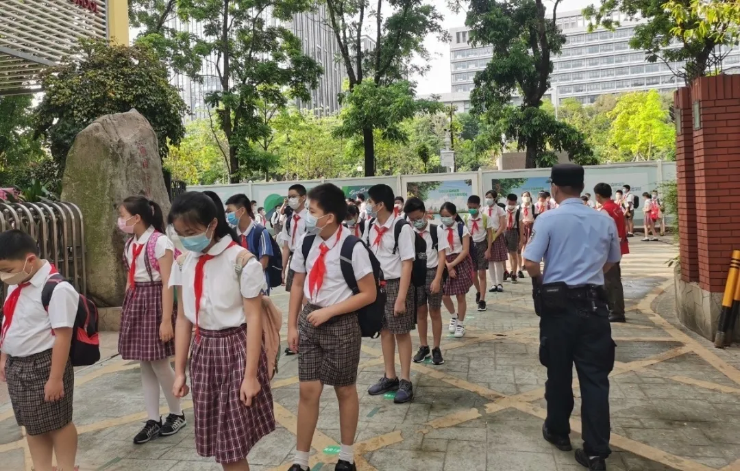 學校大門是校園疫情防控的第一道防線,把好第一道關卡尤其重要。復學前期,福田公安分局的社區(qū)民警聯(lián)合老師、醫(yī)生、安全負責人、保安等人員,高標準開展健康監(jiān)測、隔離轉運、精準防控等各項準備工作。除上學、放學時段,轄區(qū)各學校將采取全封閉管理,對外來人員嚴格詢問登記,逢車必檢、逢人必查,將風險隱患攔截在校門外。