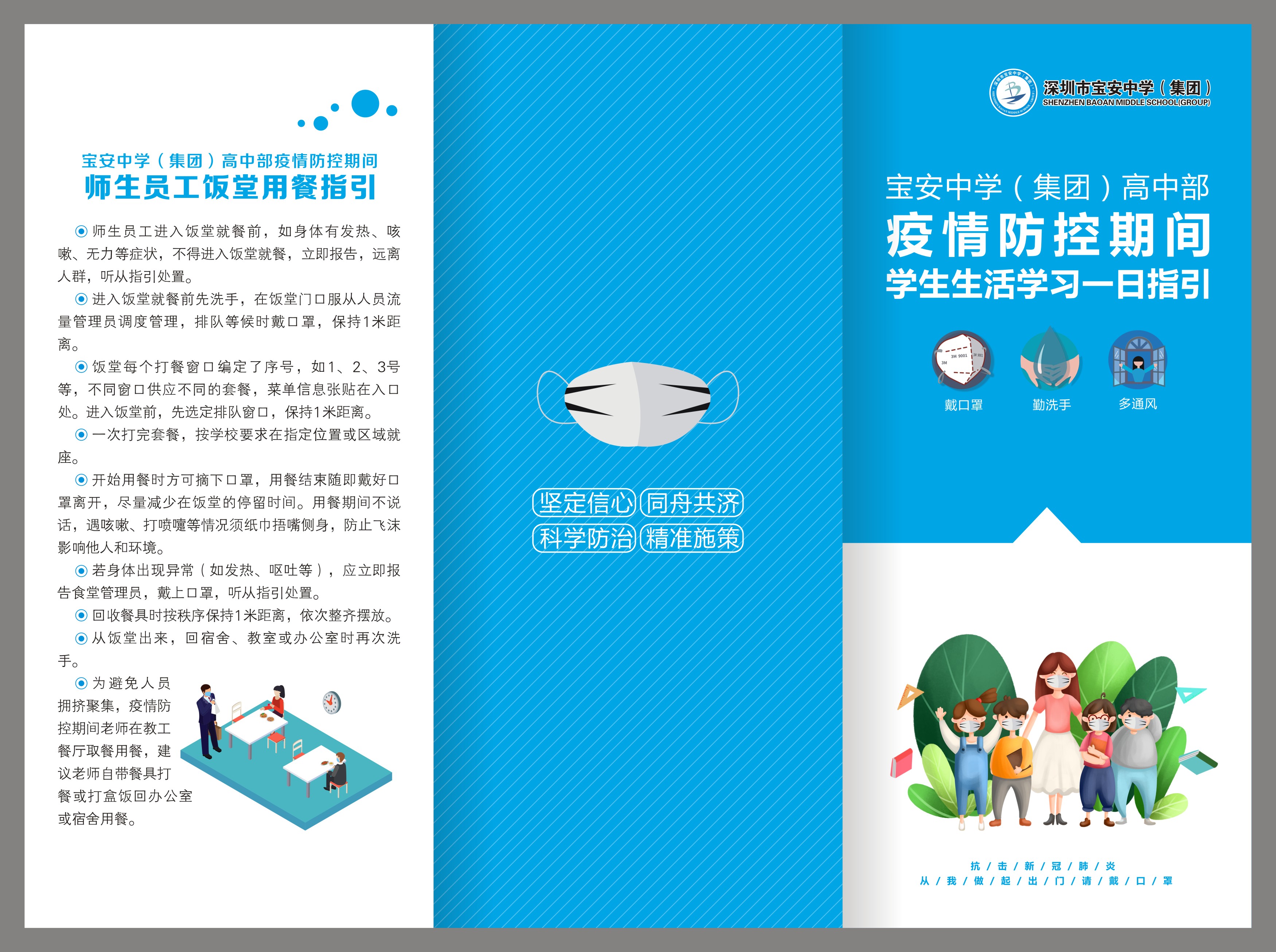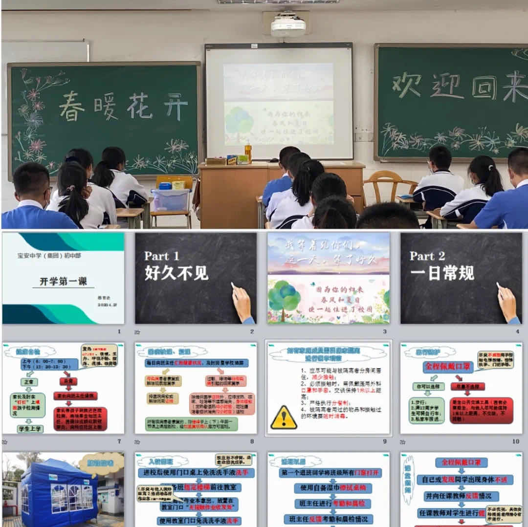 早在3月,返校復(fù)課的相關(guān)準(zhǔn)備工作就已經(jīng)在緊鑼密鼓地推進(jìn)中。為了規(guī)范師生返校復(fù)課各項(xiàng)措施和要求,在深圳市教育局發(fā)布復(fù)課防控疫情工作指引之前,彭鍛華就結(jié)合疫情形勢(shì)變化與學(xué)校實(shí)際,提出制定寶中集團(tuán)的《學(xué)生學(xué)習(xí)生活一日指引》《教師工作生活一日指引》,對(duì)在校師生每天各個(gè) 時(shí)段 、各個(gè) 地點(diǎn) 的學(xué)習(xí)、工作和生活做出了明確指引。