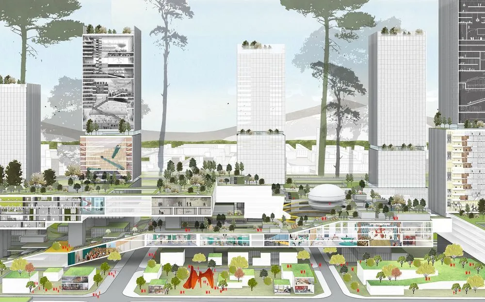 南山科技創(chuàng)新中心,一個以“產業(yè)生態(tài)雨林”為概念的產業(yè)園區(qū),由HPP、深圳市建筑設計研究總院(SZAD)、AREP共同設計。