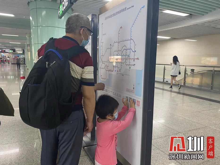地鐵站內(nèi),正在查看地鐵路線圖的市民。