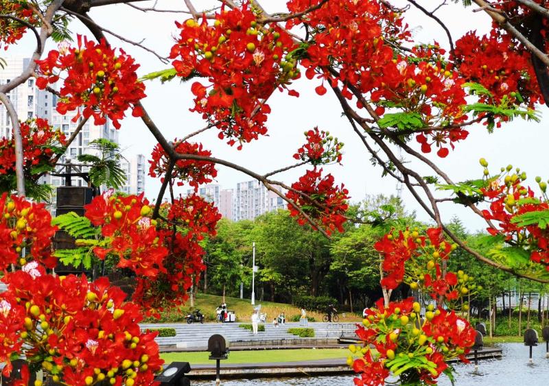 見圳客戶端·深圳新聞網(wǎng)2020年5月15日訊(深圳特區(qū)報記者 邱海彬 文/圖)又是一年鳳凰花開時,五月的鵬城沉浸在鳳凰木火紅的海洋之中,道路旁、公園內(nèi)、小區(qū)里的鳳凰花盛開著美麗的花朵,為城市增添了不少靚麗色彩,紅紅火火的鳳凰花成了夏日熱情的引領者。