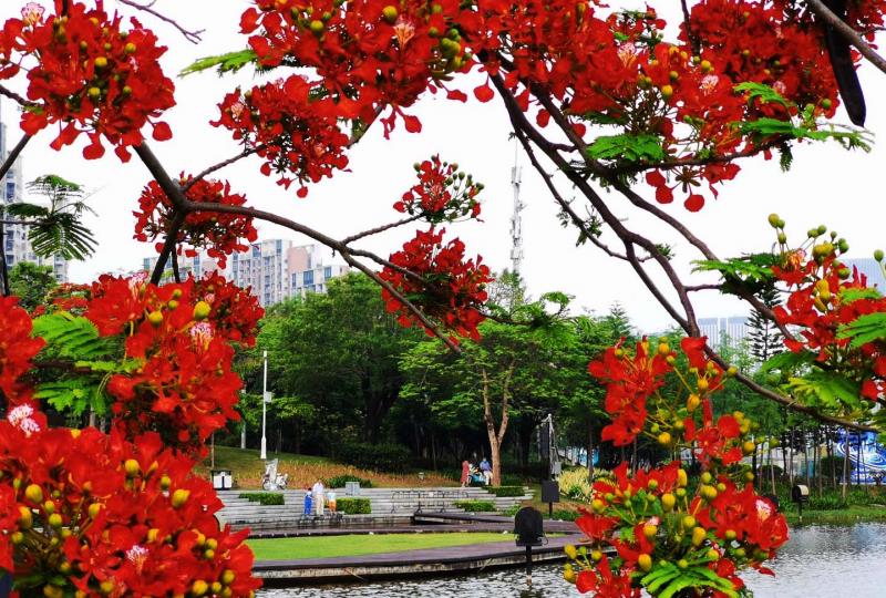 超美?。⑷~如飛凰之羽,花若丹鳳之冠"!鵬城鳳凰花盛開(kāi)