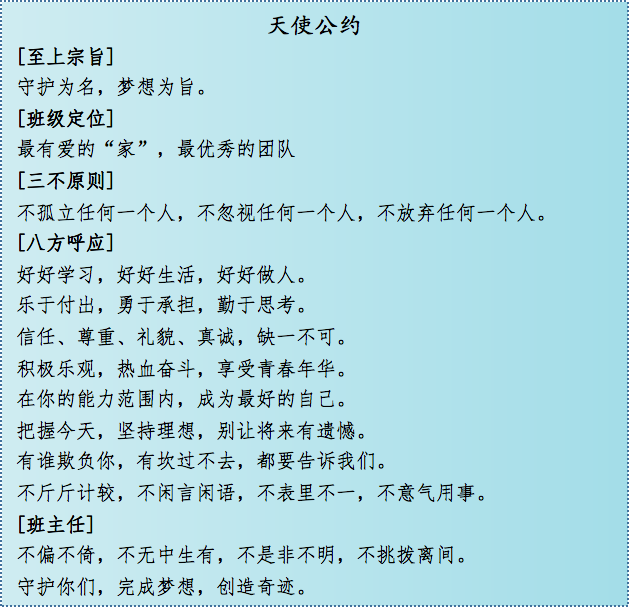 詹老師所帶班級嚴格遵守著“公約精神”,創(chuàng)造了一個個驚喜:2015級14班在藝術(shù)季班級文化設(shè)計中是全校唯一全員參與的班級;2016級8班在跳繩比賽中從練習(xí)時的倒數(shù)第一到復(fù)賽逆襲闖進決賽獲得一等獎;2017級9班在疫情網(wǎng)課期間堅持每科作業(yè)“今日事今日畢”,無一人掉隊。