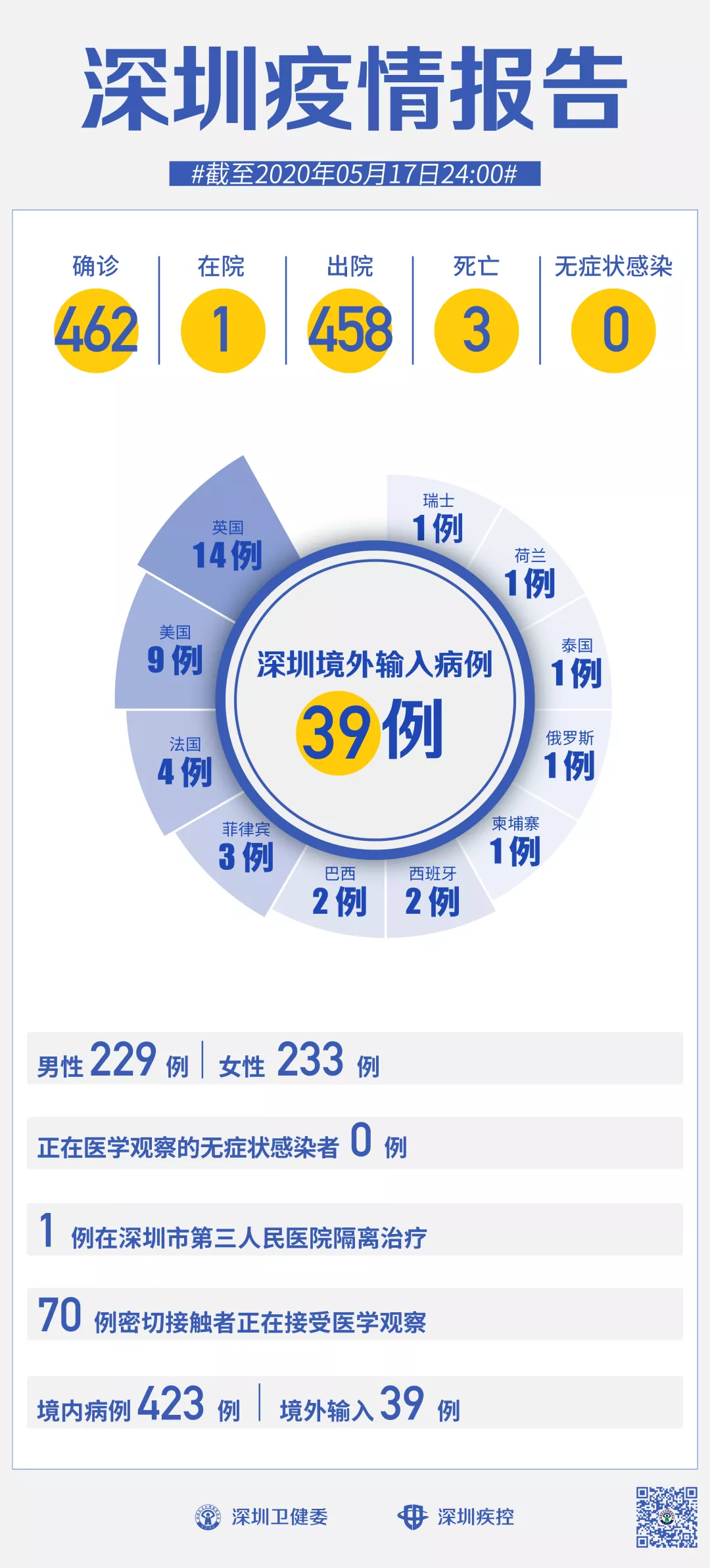 截至5月17日24時(shí),深圳累計(jì)報(bào)告新冠肺炎病例462例。