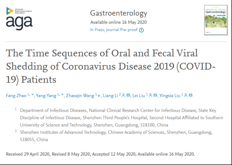 見圳客戶端·深圳新聞網(wǎng)2020年5月20日訊(深圳特區(qū)報記者 戴曉蓉 通訊員 深三院)國際知名醫(yī)學雜志“胃腸病學(Gastroenterology)”于5月16日在線重磅推出了深圳市第三人醫(yī)院(深圳三院)關(guān)于新冠肺炎患者腸道排毒特征及規(guī)律的研究論文《The Time Sequences of Oral and Fecal Viral Shedding of Coronavirus Disease2019(COVID-19) Patients》。該雜志的學術(shù)影響力在胃腸病學和肝病專業(yè)領(lǐng)域排名第一。