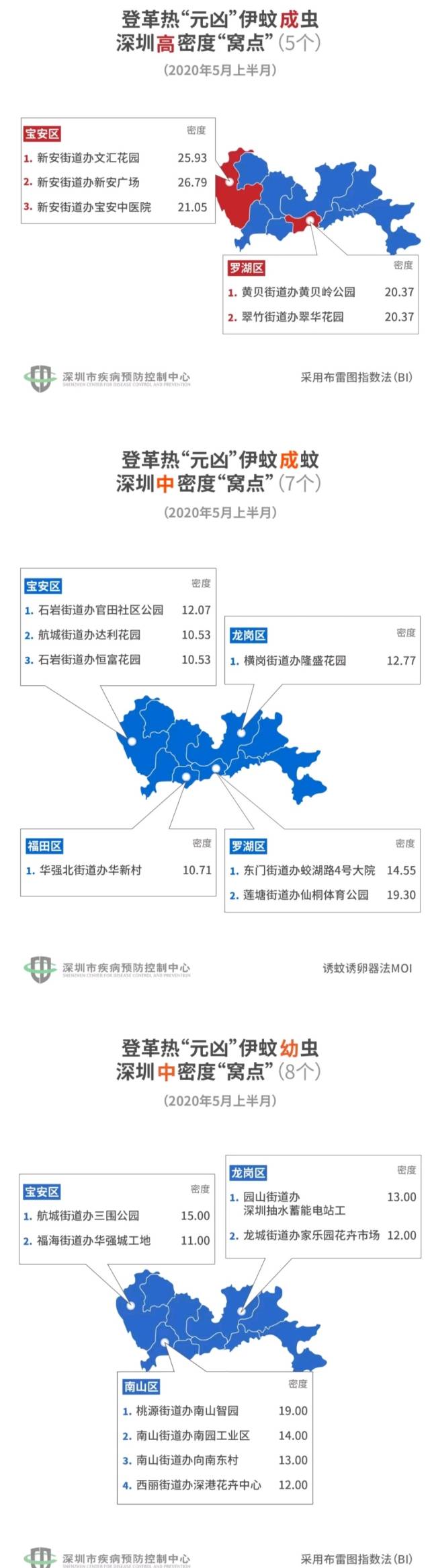 5月18日,深圳市疾控中心發(fā)布了5月上半月(5月1日-15日)的全市伊蚊密度監(jiān)測結(jié)果,高、中密度的20個“窩點”里,有8個是居民小區(qū),其余多為公園、工地,還有1個是醫(yī)院。