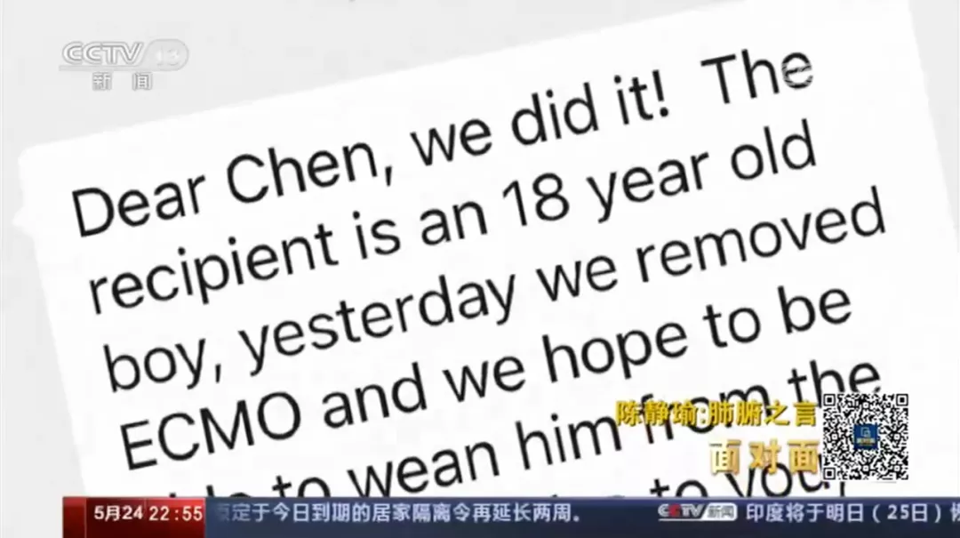 5月20日,全國人大代表、無錫市人民醫(yī)院副院長陳靜瑜收到了意大利同行發(fā)來的短信,意大利完成了歐洲首例新冠肺炎晚期肺纖維化的雙肺移植,受者是一名18歲的男孩,中國經(jīng)驗(yàn)在國際上得到分享傳播。