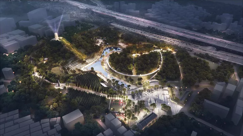 “民法環(huán)”以懸浮于現(xiàn)狀山體并融于山體的形象和環(huán)形空中廊道,結(jié)合沿途場(chǎng)地特色,分段展示了平等、自愿、公平、誠(chéng)實(shí)信用、綠色及公序良俗等民法6大基本原則,彰顯民法主題。行走于山林之間,感悟《民法》正氣,何樂(lè)不為?